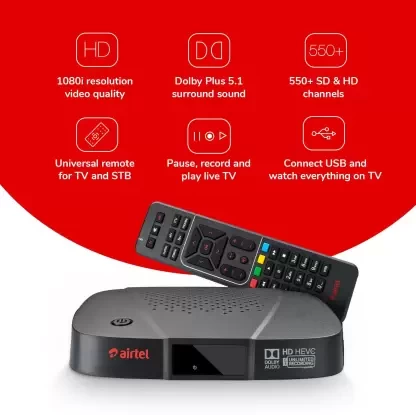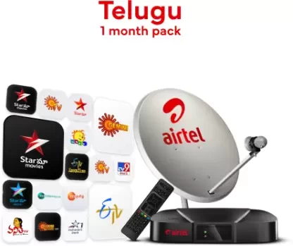 Experience the magic of digital entertainment with Airtel DTH HD Set Top box : superior picture & sound, unique interactive services and much more. This DTH connection offer of Airtel brings to you -1 Month Telugu Entertainment Pack SD Pack for complete entertainment of entire family with over 250 channels to choose from Lifestyle, infotainment, news or music - With Airtel Digital TV connection you’ll never run out of choices as it comes with 50 + HD channels across various genres to suit your entertainment needs. With 480p Picture Resolution & Digital Surround Sound in Airtel DTH Set Top Box, you can experience crystal-clear picture clarity and great audio with 2.1 Surround Sound. The DTH HD box price shown for the Product is towards the Activation Vouchers and installation. DTH HD Set Top Box, Remote and incidental equipment’s shall at all times remain the property of BTL.