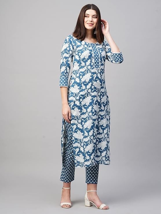 /home3/webte7nz/ecommerce.webtechsoftwaresolutions.com/config ANNI DESIGNER Women's Cotton Blend Straight Printed Kurta & Pant