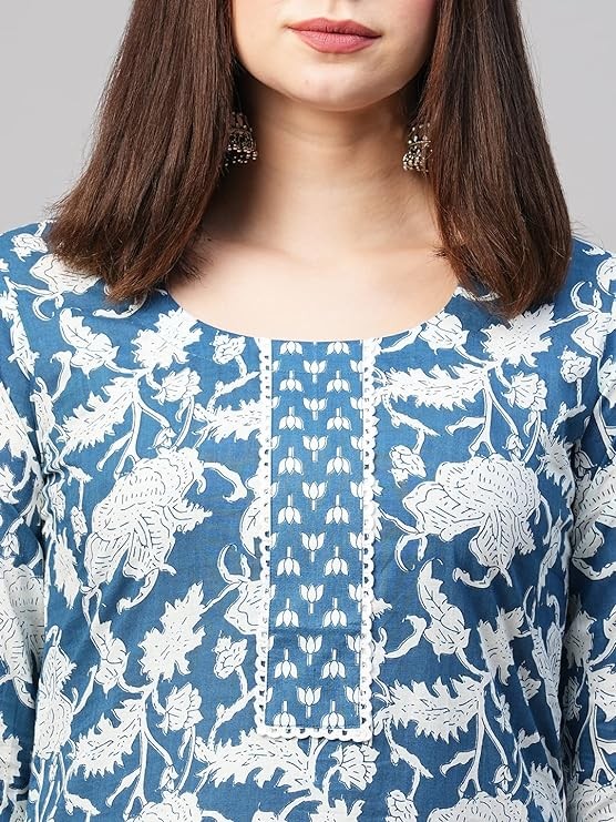 ANNI DESIGNER Women's Cotton Blend Straight Printed Kurta & Pant