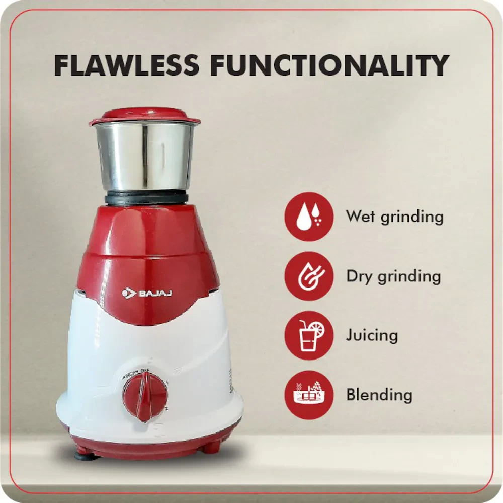 BAJAJ GX-75 750 Juicer Mixer Grinder (4 Jars, White, Red)#JustHer
