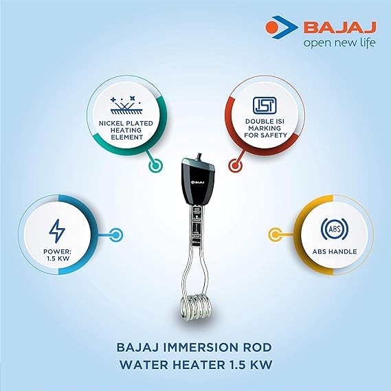 Water Proof Sealed terminals for safety and longer life Nickel plated heating element provides protection from corrosion & rust Double ISI mark for safety & performance assuring peace of mind Plastic handle to prevent from shock & rust