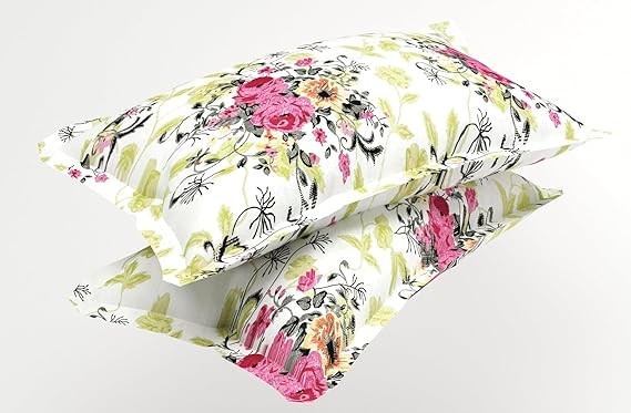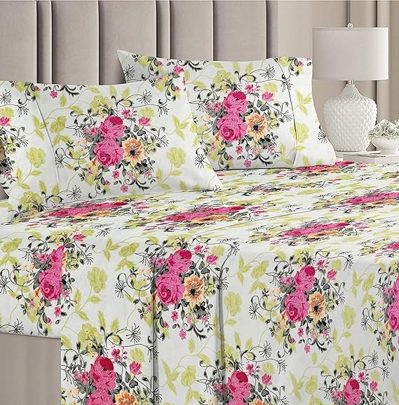 • BSB HOME Microfiber 144 TC Aspire 2.O Collections Soft Breathable Wrinklefree Floral Printed Double Bedsheets with 2 Regular Size Pillow Covers , Color White Green Pink Rose)