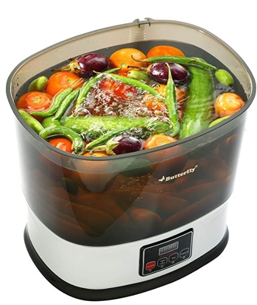 Do not compromise with your health by consuming pesticide-laden and harmful bacteria-filled food items. You can bring home the Butterfly Magic Fruit & Vegetable Cleaner and let it wash your vegetables, fruits, and meats thoroughly. It uses plain and clean water to effectively remove germs and infectants from the surfaces of raw food items. It comes with Active Oxygen Technology which adequately eliminates pesticides and more. It is also equipped with three Auto Predefined Timers.