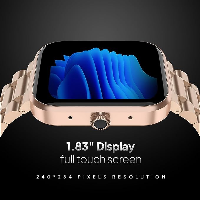 Fire-Boltt Encore Stainless Steel Smart Watch with 1.83” Full Touch Screen Display,240 * 284 PPI, Bluetooth Calling,10-Days Battery Life,IP67 Water Resistant,Upgraded Health Sensors (Rose Gold)