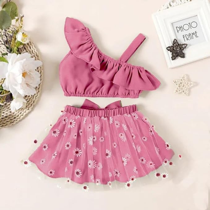 HIKUJ Baby girls Little Toddler Sleeveless cotton Top Skirt 2Pcs Clothing Set for kids wear