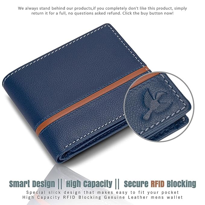 • RFID BLOCKING SECURITY : Our Wallets Are Equipped With Advanced RFID Secure Technology, A Unique Metal Composite, Engineered Specifically to Block 13.5 Mhz Or Higher Rfid Signals And Protect The Valuable Information Stored On RFID Chips From Unauthorized Scans In Your Wallet.