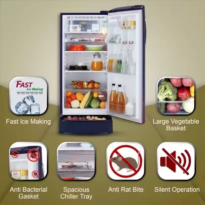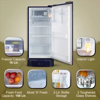 You can keep your food fresh and hygienic for a long time in this LG single door refrigerator. The smart inverter compressor of this refrigerator ensures enhanced performance. The Smart Connect technology of this refrigerator automatically connects to your home inverter during power cuts so that your food stays fresh for a long time. This solar smart refrigerator works on solar energy to reduce electricity consumption and bills. The Moist and Fresh feature of this refrigerator maintains optimal moisture to keep your food fresh. You can easily store vegetables at room temperature in the base stand drawer of this refrigerator. It has a rapid ice making technology that makes ice in about 108 minutes