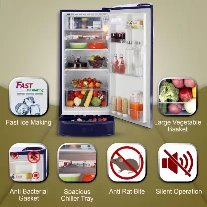 This LG refrigerator has a smart inverter compressor that provides long-lasting freshness, reduces noise, and also ensures stabiliser-free operation. Its smart connect technology connects this refrigerator to your home inverter during power cuts and keeps the food fresh. This refrigerator can work on solar energy. The base stand of this refrigerator allows you to store vegetables at room temperature. You can keep your food fresh for a long time with the lattice-patterned box in this refrigerator. Its toughened glass shelves can hold up to 175 kg so that you can store heavy food items with ease.