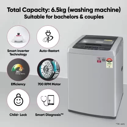 This fully automatic washing machine from LG comes with a smart inverter motor that makes the appliance energy efficient. The washing machine also comes with an innovative TurboDrum feature that helps remove even the most stubborn stains. The washing machine also comes with additional features such as Smart Diagnostic, auto-restart function and child lock, adding to your convenience.