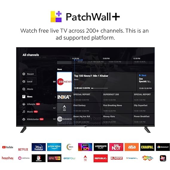 Special FeatureHey Google | Google TV | HDR 10 | Supported Applications : PatchWall, PatchWall+, Netflix, Amazon Prime Video, Disney+ Hotstar, Miracast, Media player, Gallery, TV Manager, User Manual, Live TV, YouTube, YouTube Music, Play Store See more