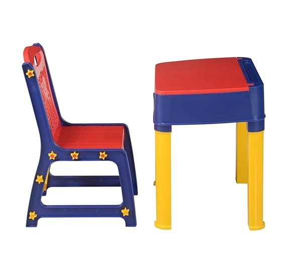Nikamal Apple Junior's Study Table and Chair Set for 3 to 12 Years Kids (Medium, Red & Blue)