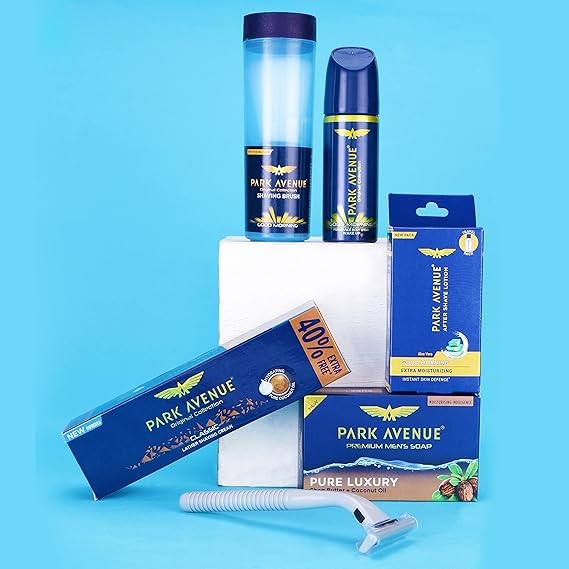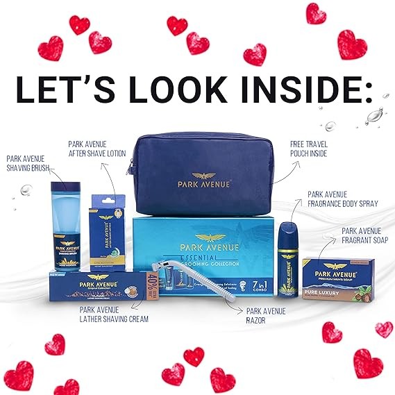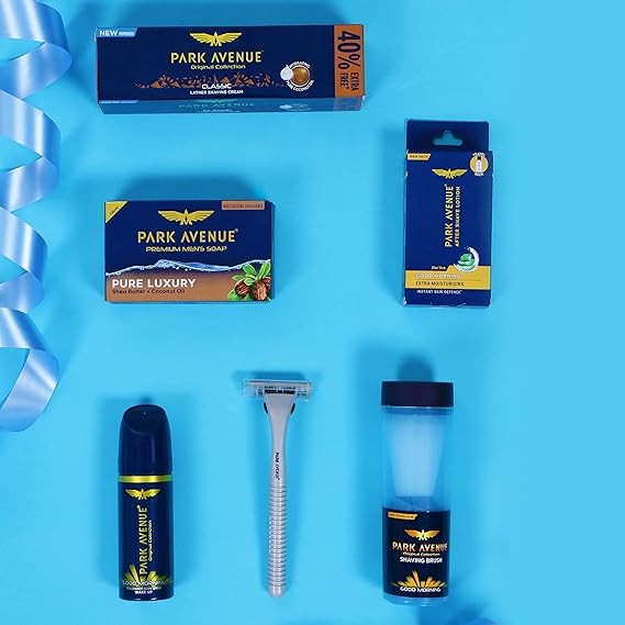 • CONTAINS: The Park Avenue Essential Grooming Collection Kit includes Park Avenue Good Morning After Shave Lotion for men (45ml), Park Avenue Premium Soap for Men's - Pure Luxury (125g), Park Avenue Classic Lather Shaving Cream for Men (84g), Park Avenue Shaving Brush for Men (1 unit), Apache Razor (1 unit), Free Travel Pouch inside