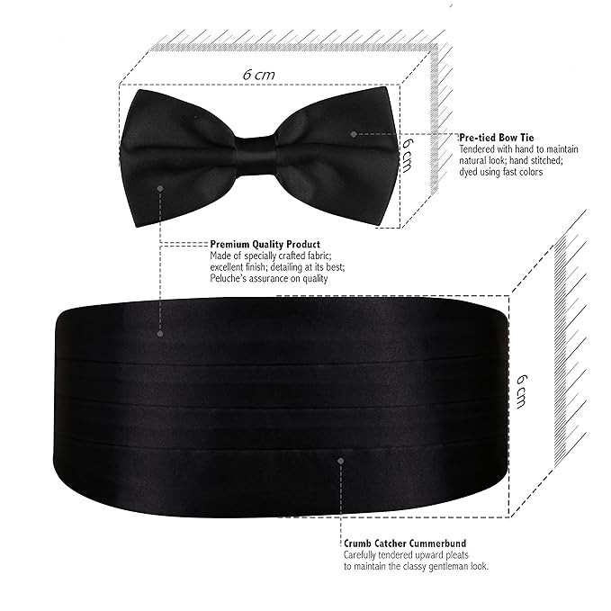 • Quality - Premium Quality of Satin used in crafting this Luxe Cummerbundh. We, at Peluche, believe in zero compromise with quality. We also understand the importance of dressing well and hence we present it with a complementary Satin Bow-Tie.