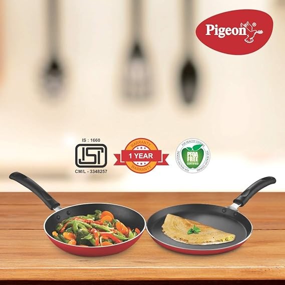 Pigeon Aluminium Nonstick Duo Pack Flat Tawa 250 and Fry Pan 200
