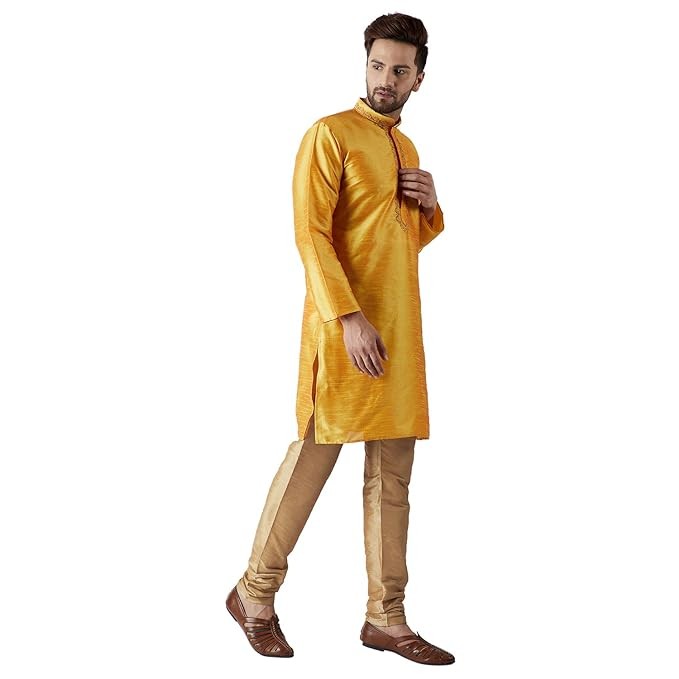 • Style: Mens Stitched Pyjamas; Fabric: Dupion Silk Length: Full size; Fit: Regular Churidaar