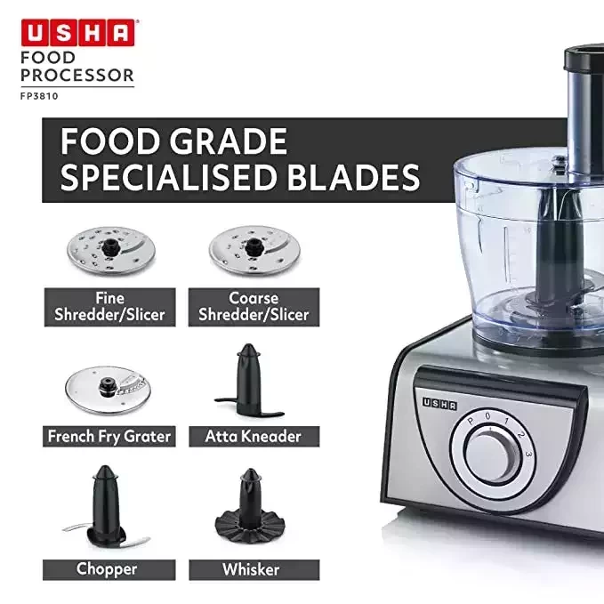 USHA FP 3811_ 1000 W Food Processor (Black, Silver)
