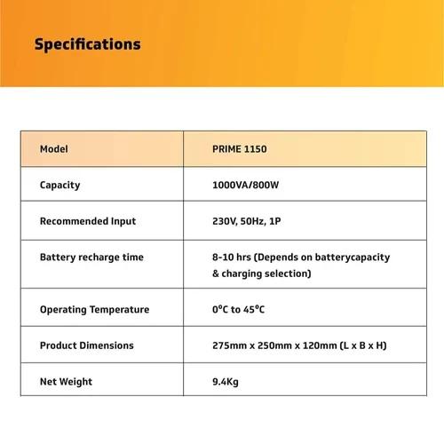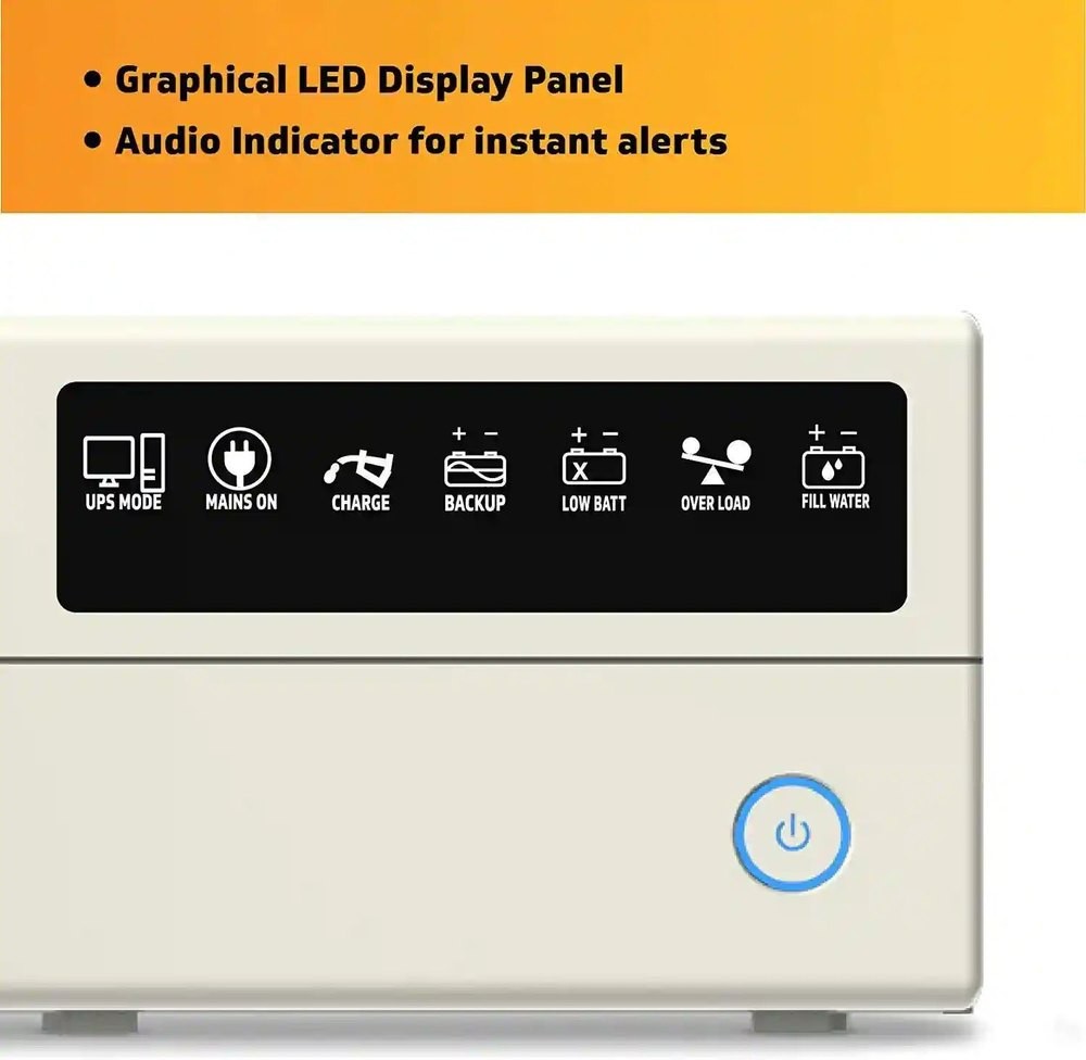 V-Guard Prime 1150 is an intelligent DUPS equipped with a water topping reminder that reminds you for battery water topping to avoid battery failure and inconvenience. This product is compatible with all batteries from 80-230 AH in Flat Plate, Tubular, SMF and local types. It also has user selectable output voltages through switch selection. Battery has to be purchased separately for this Inverter.